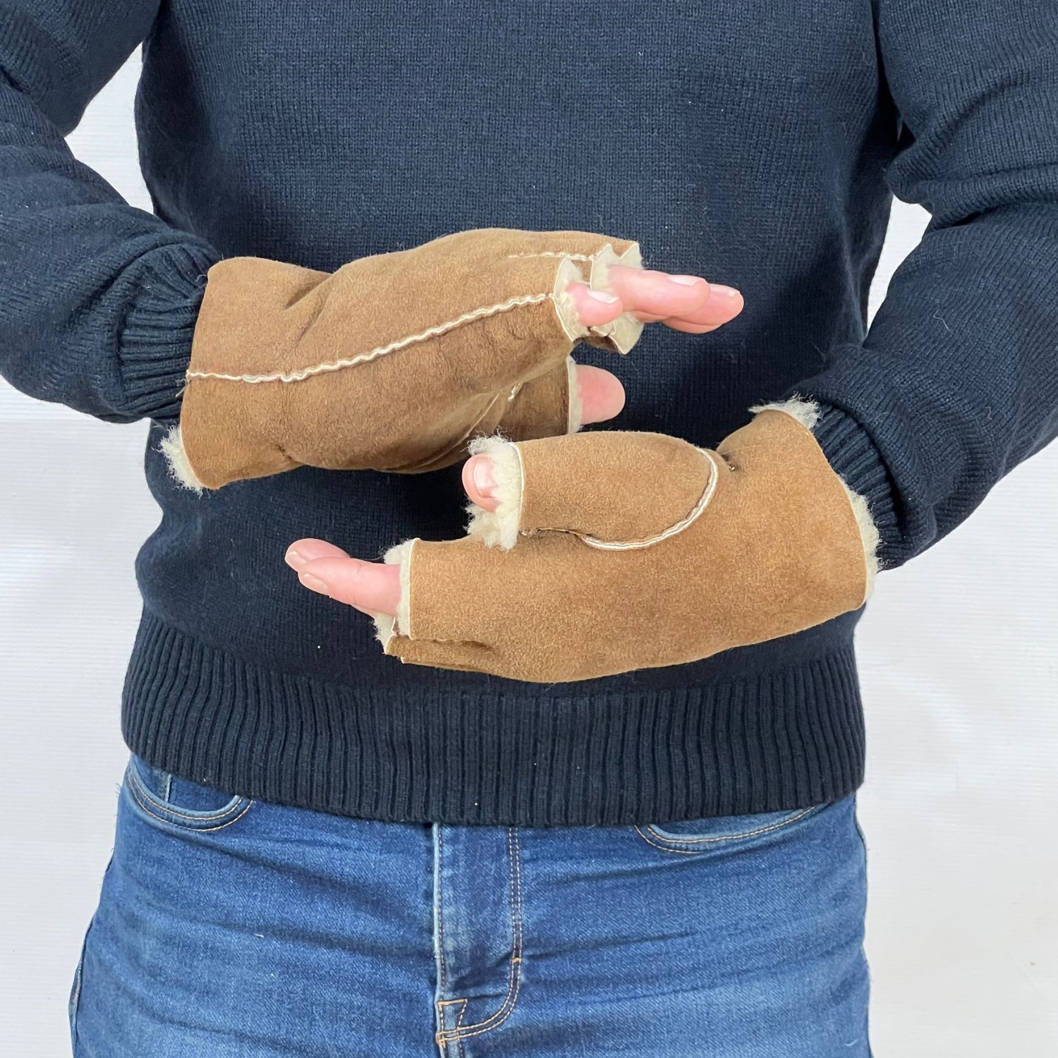 Sheepskin Gloves Brown Hurricane | Fingerless Gloves by Owen Barry