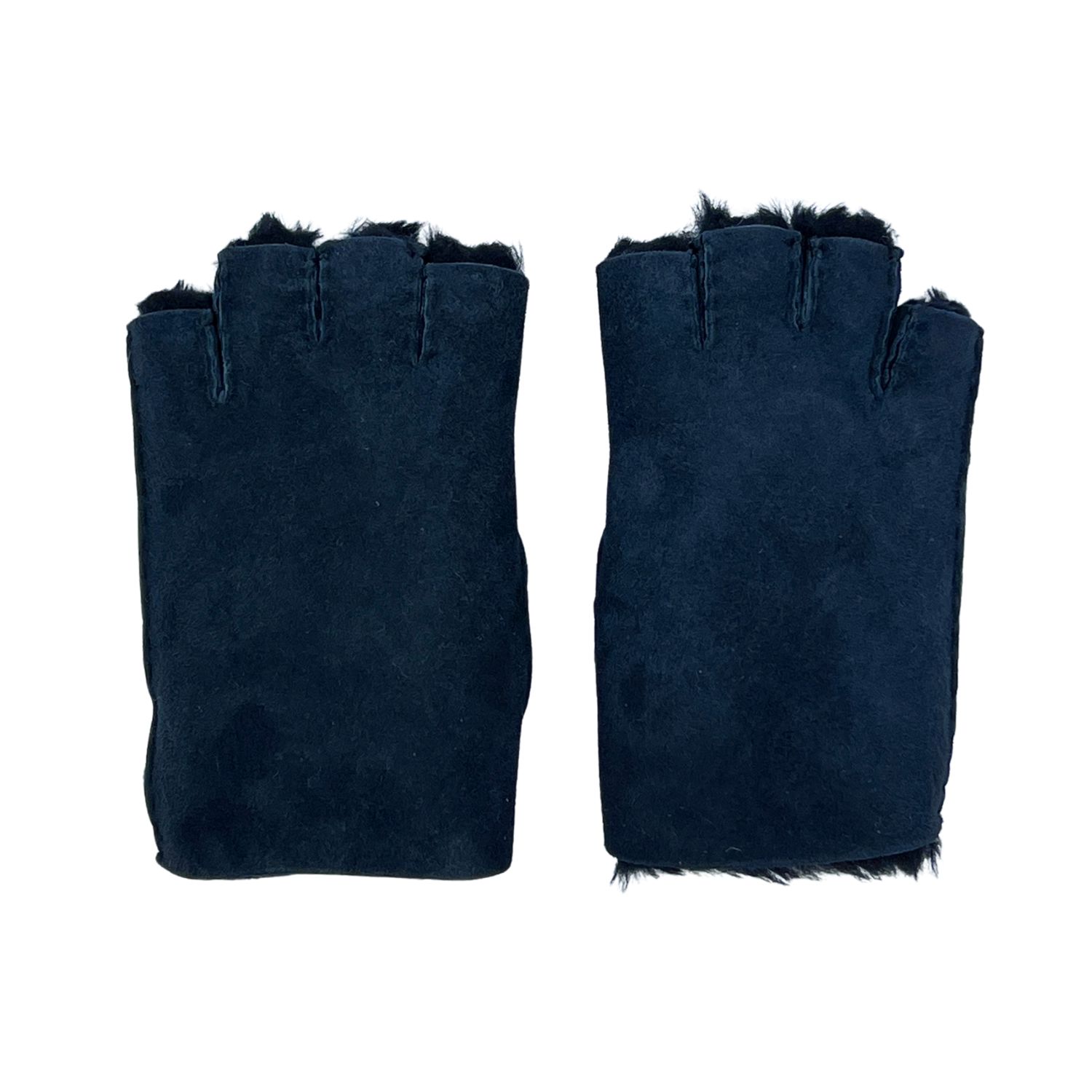 Sheepskin Gloves Navy Blue | Fingerless Gloves by Owen Barry