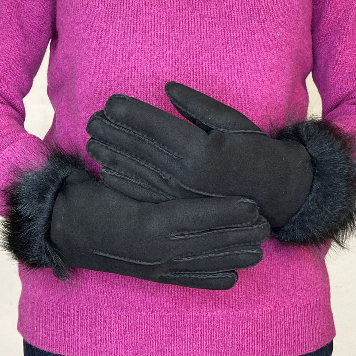 3. The fourchettes are made from a contrasting dark brown sheepskin, giving the gloves a quirky, mismatched appearance compared to the rest of the glove.