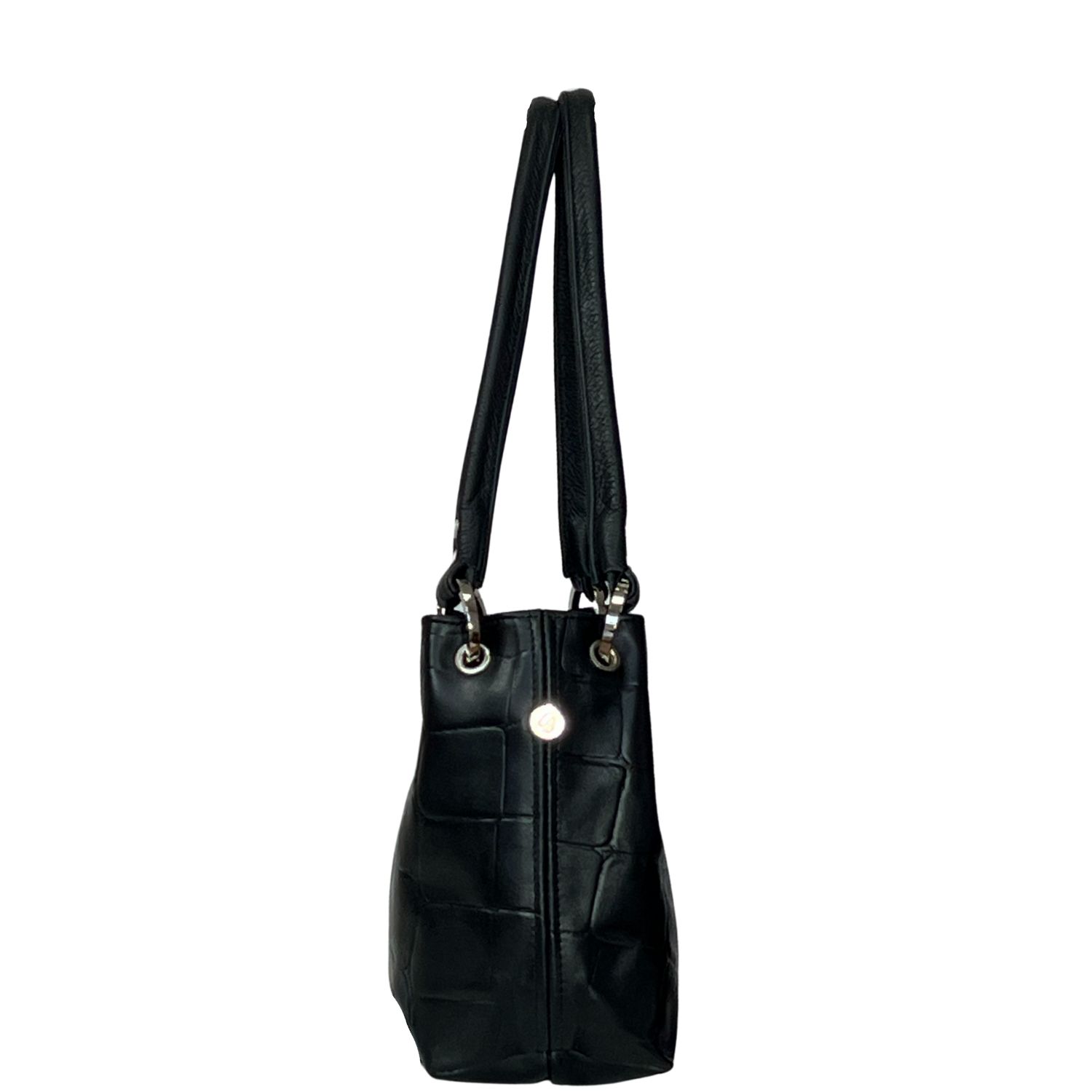 Leather Shoulder Bag Croc Black | Pepsi by Owen Barry